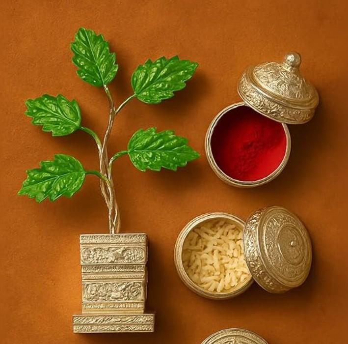 Bring home divine blessings with the German Silver Plated Tulsi Plant Decorative Showpiece (4 Inch). Crafted with premium silver-plated finish, this elegant piece beautifully replicates the sacred Tulsi plant, known as the “Queen of Herbs” in Indian tradition. Its glossy shine, intricate detailing, and compact 4-inch size make it a perfect fit for your home temple, living room, office desk, or gifting needs.